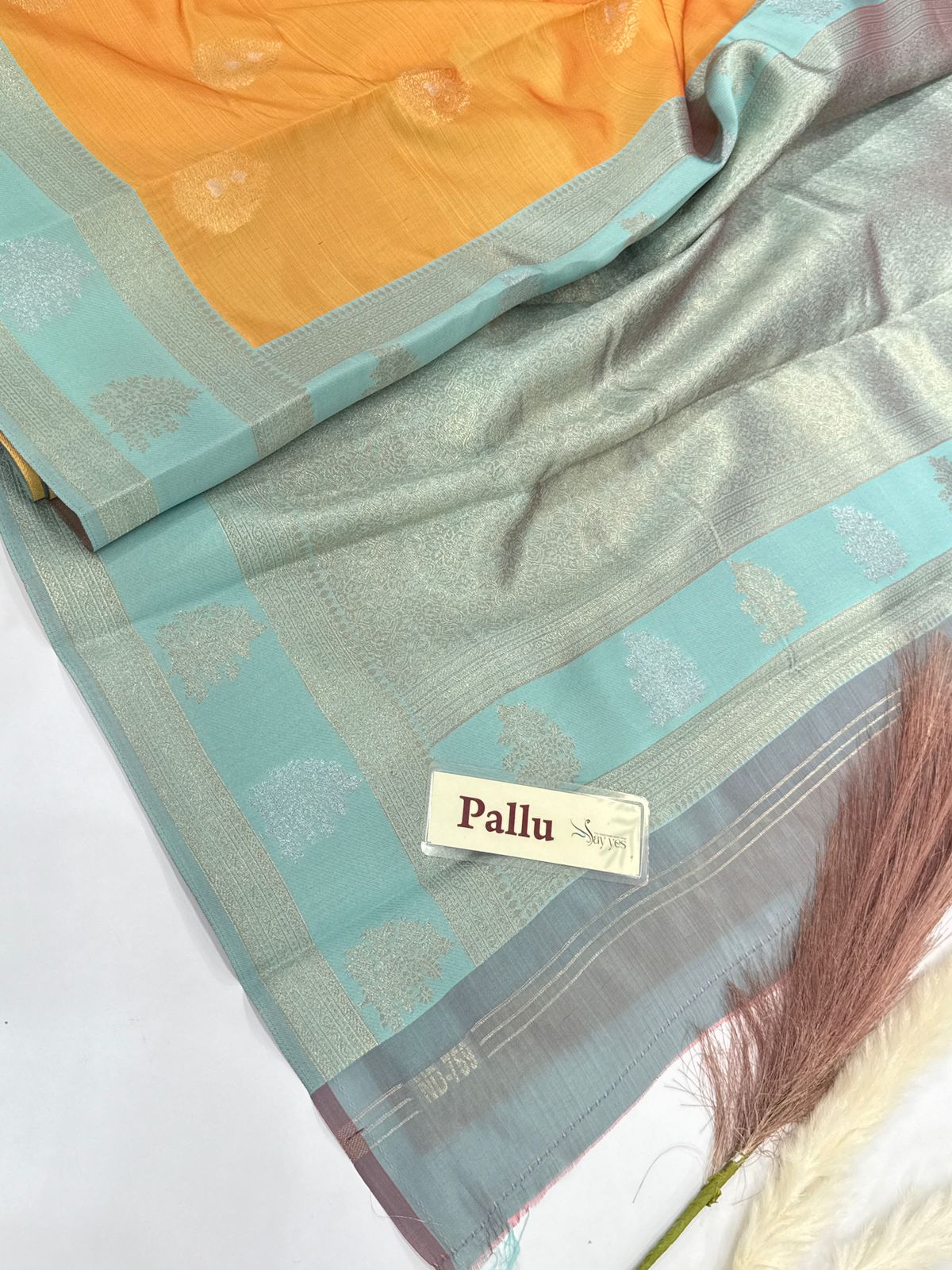 Thaaragai (Semi silk saree) – Tangerine & Ice blue