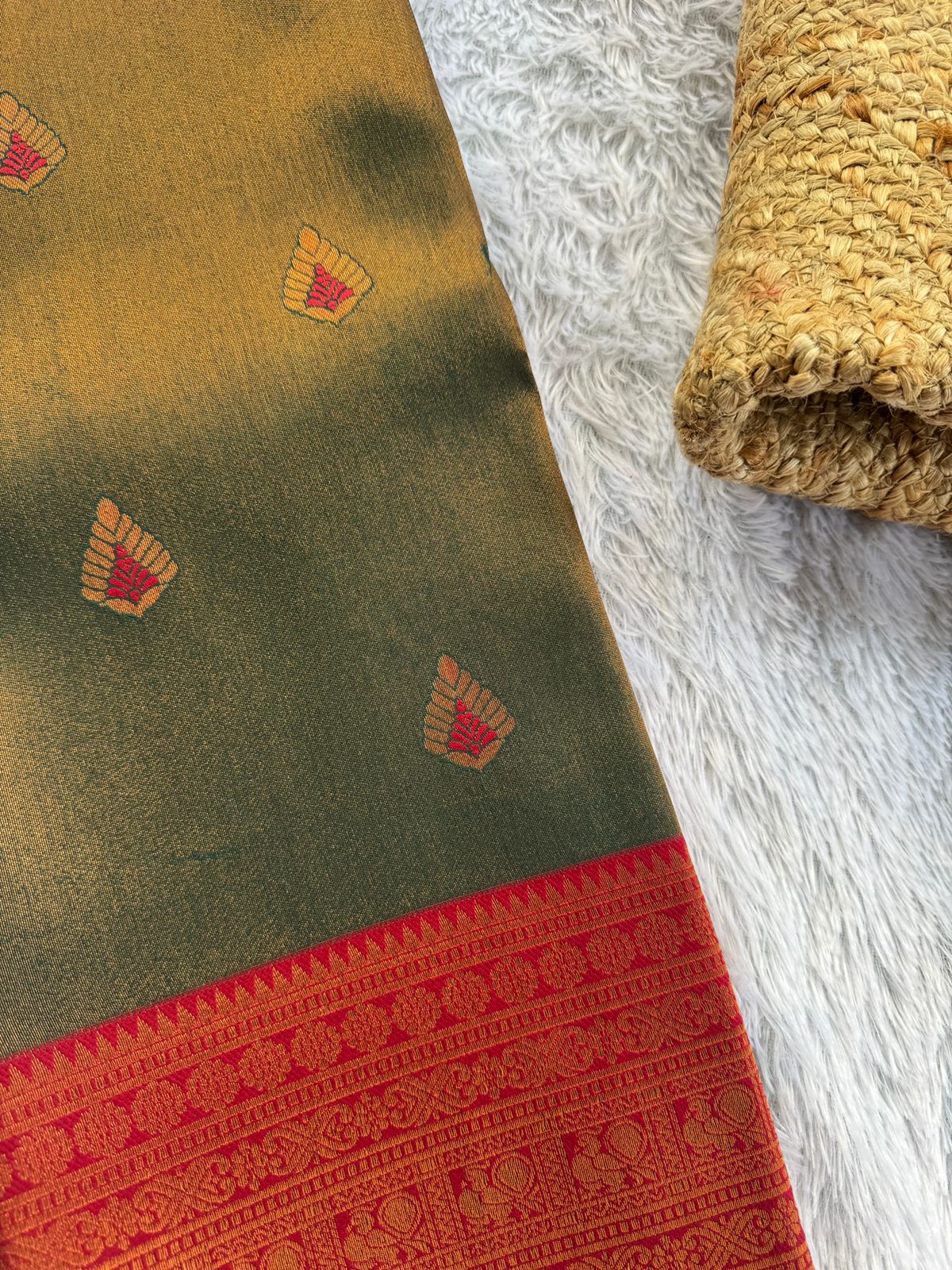 This tissue silk saree offers comfort, ease of walking and sitting, simplicity and effortless maintenance.