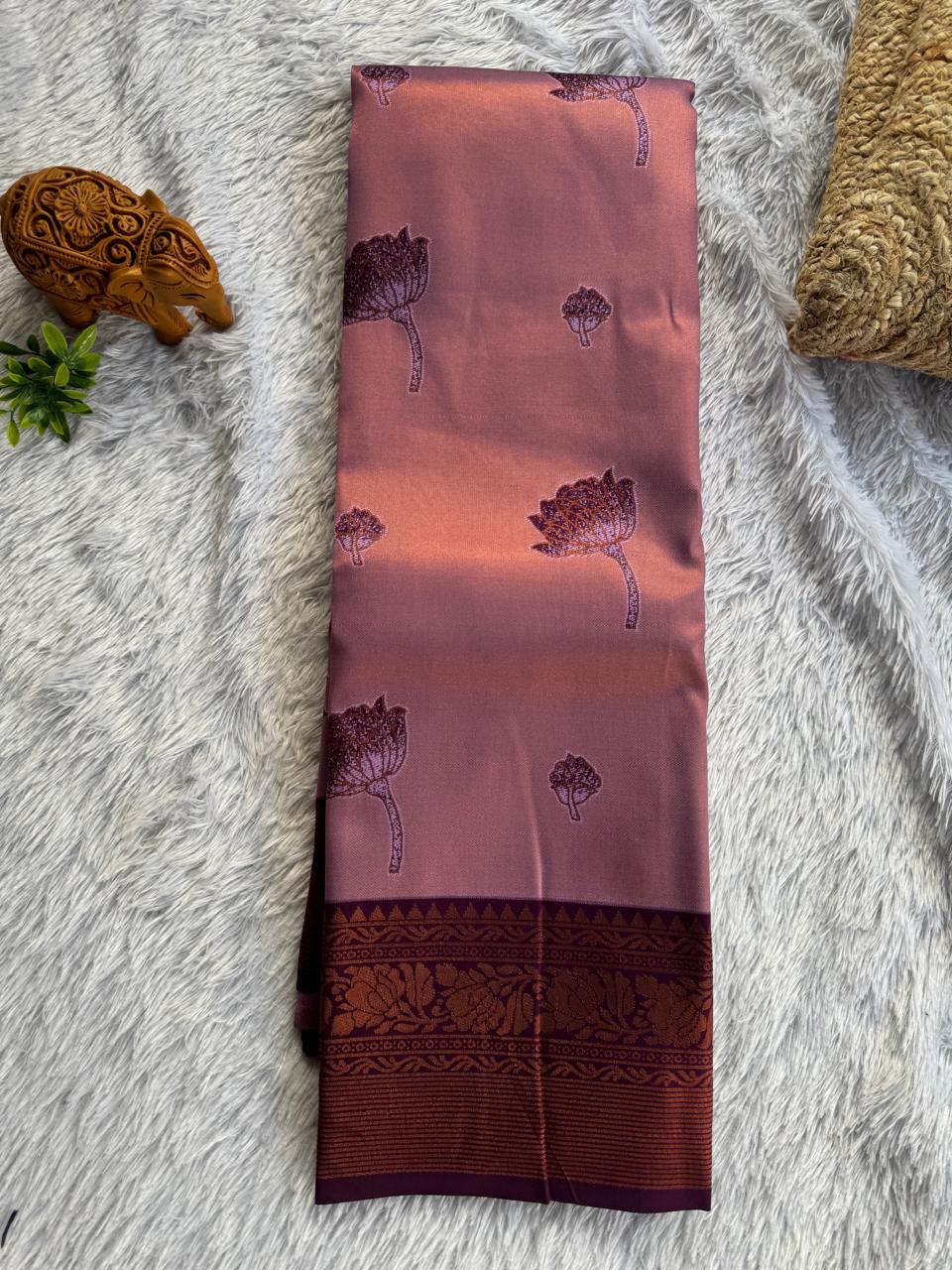 This tissue silk saree offers comfort, ease of walking and sitting, simplicity and effortless maintenance.