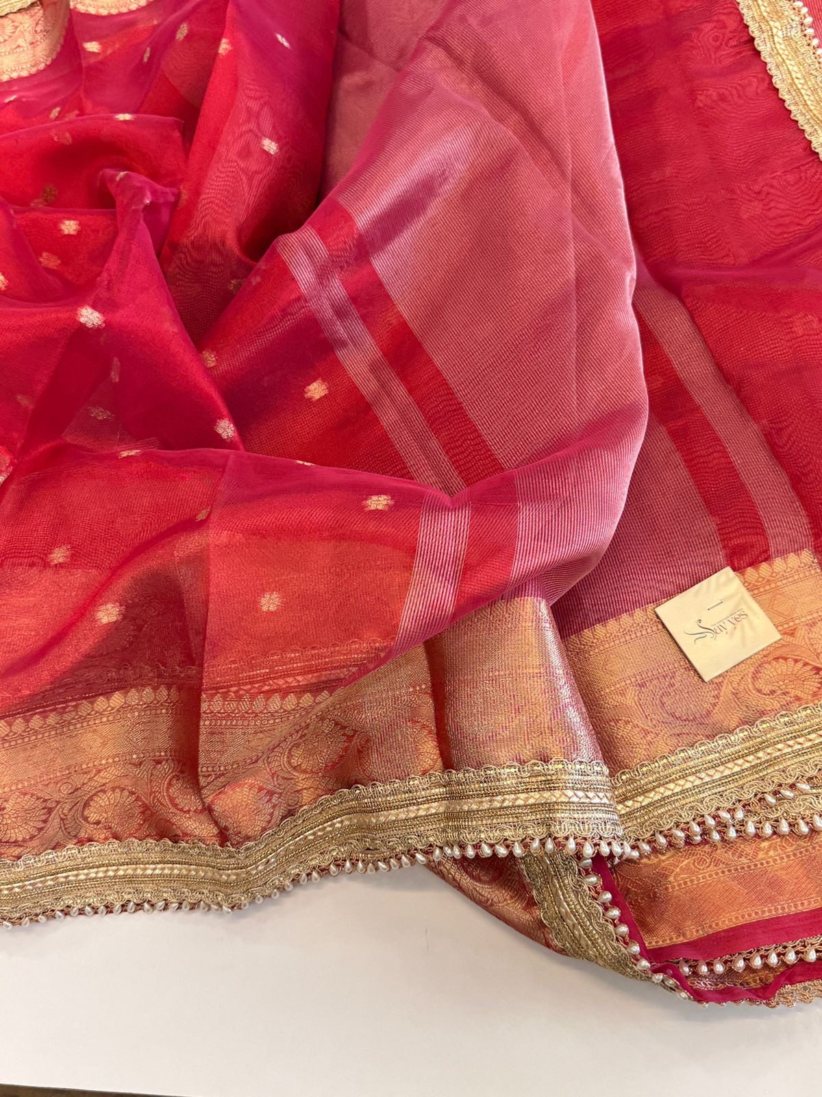 Finished with a statement sequin-edged border, this saree merges heritage craftsmanship with a chic, contemporary touch — making it perfect for weddings, festive evenings, and elegant celebrations.